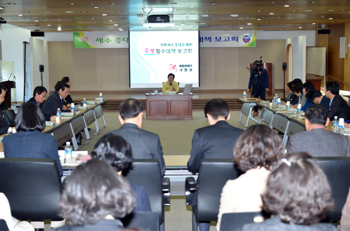 시는 3월 24일 오후 3시 시청 한누리실에서 이재명 시장이 참석한 가운데 지방세수 증대를 위한 특별 징수 대책보고회를 열었다. 이날 보고회에는 시 산하 전 세무부서 공무원들이 참석했다.