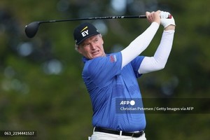 (미국=국제뉴스) 김준서 기자 = 남아프리카 공화국의 어니 엘스가 17일(현지시간) 하와이 카일루아 코나의 후알랄라이 골프 클럽에서 열린 미쓰비시 일렉트릭 챔피언십 2라운드에서 1번 홀에서 티샷을 치고 있다.