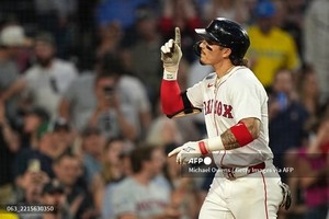 (미국=국제뉴스) 박근영 기자 = 보스턴 레드삭스의 재런 듀란이 17일(현지시간) 매사추세츠주 보스턴 펜웨이 파크에서 열린 애틀랜타 브레이브스와의 경기 3회에 투런 홈런을 친 후 기뻐하고 있다.