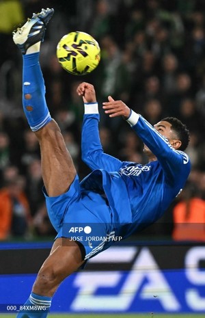 (스페인=국제뉴스) 김준서 기자 = 레알 마드리드의 영국 미드필더 주드 벨링엄이 23일(현지시간) 엘체의 마르티네스 발레로 스타디움에서 열린 엘체 CF와 레알 마드리드 CF 간의 스페인 리그 축구 경기에서 공을 차고 있다.
