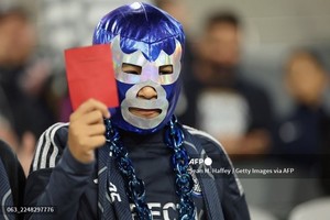 (미국=국제뉴스) 이기철 기자 = 샌디에이고 FC의 팬이 24일(현지시간) 미국 캘리포니아주 샌디에이고 스냅드래곤 스타디움에서 열리는 샌디에이고 FC와 미네소타 유나이티드의 2025 메이저리그사커(MLS)컵 플레이오프(PO) 컨퍼런스 준결승 전 레드카드를 들고 있다.