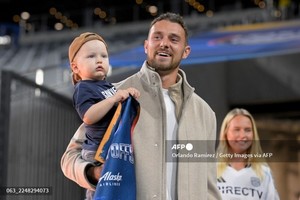 (미국=국제뉴스) 이기철 기자 = 샌디에이고 FC의 알렉스 마이튼(77번)이 24일(현지시간) 미국 캘리포니아주 샌디에이고 스냅드래곤 스타디움에서 열리는 샌디에이고 FC와 미네소타 유나이티드의 2025 메이저리그사커(MLS)컵 플레이오프(PO) 컨퍼런스 준결승에 앞서 도착하고 있다.