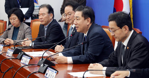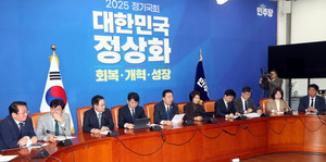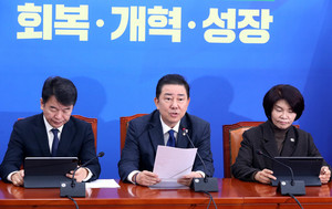 (서울=국제뉴스) 김병기 더불어민주당 원내대표가 25일 서울 여의도 국회에서 열린 원내대책회의에서 모두 발언을 하고 있다./사진=이용우 기자