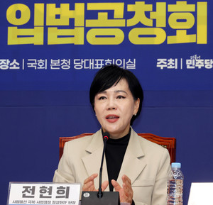 (서울=국제뉴스) 전현희 더불어민주당 사법불신 극복·사법행정 정상화 TF 단장이 25일 사법불신 극복과 사법행정 정상화를 위한 입법공청회에서 발언하고 있다./사진=이용우 기자