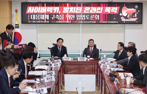 (서울=국제뉴스) 송언석 국민의힘 원내대표가 25일 서울 여의도 국회 의원회관에서 열린 '사이버렉카, 방치된 온라인 폭력: 대응체계 구축을 위한 입법토론회'에서 축사하고 있다./사진=이용우 기자