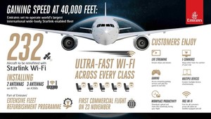 (서울=국제뉴스) 유지현 기자 = 에미레이트항공이 보잉 777 기종에 스페이스X의 위성 인터넷 서비스 ‘스타링크(Starlink)’ 도입을 완료했다. 이를 시작으로 2027년 중반까지 전 기단에 스타링크 기반 기내 와이파이 서비스를 순차적으로 확대 적용할 계획이다.스타링크 도입으로 승객들은 좌석 모니터와 개인 기기에서 콘텐츠 스트리밍, 게임, 영상 통화, 업무, 소셜 미디어 등 다양한 활동을 비행 내내 끊김 없이 즐길 수 있게 된다. 해당 서비스는 전 클래스 승객에게 무료로 제공되며, 결제나 별도의 스카이워즈 회원 자격 없이 한 번