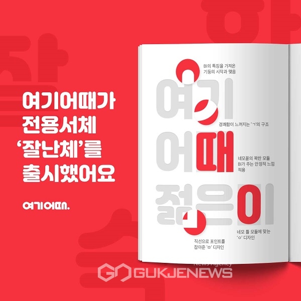 (서울=국제뉴스) 이성범 기자 = 종합숙박 앱 1위 여기어때를 운영하는 위드이노베이션(대표 심명섭)이 10월 9일 한글날을 하루 앞두고, 첫 전용서체인 '잘난체'를 출시했다.