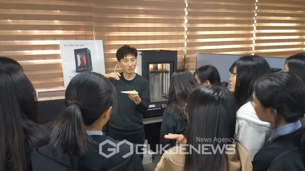 (대구=국제[뉴스) 백운용 기자 = 대구공업대학교(총장 이별나) 기계CAD과는 송현여자중학교 3학년 중 친구사랑 동아리 학생 21명 대상 '4차 산업혁명속의 3D프린터 관련 진로 체험'활동을 2018년 10월 12일(금) 시행하였다.