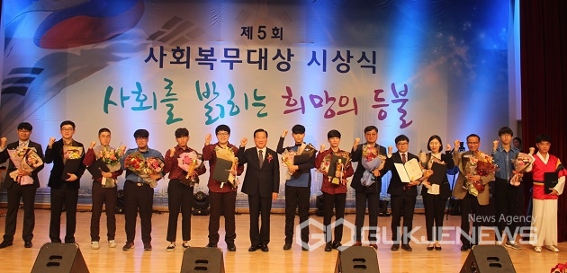 사회복무大賞은 전국 1만 1000여개 기관에서 복무 중인 5만 8000여명 사회복무요원 중 ▲ 사회복지 ▲ 보건의료 ▲ 교육문화 ▲ 환경안전 ▲ 행정지원 등 5개 복무분야별로 최우수 사회복무요원을 시상하는 행사로 올해로 5회째 이어지고 있다.