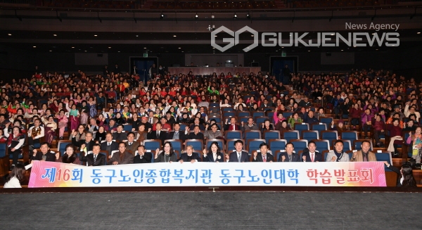(대구=국제뉴스) 백운용 기자 = 구 동구노인종합복지관(불로동 소재)은 아양아트센터 대공연장에서 배기철 동구청장을 비롯한 내빈 및 어르신 등 800여명이 참석한 가운데 12월12일 "2018년 동구노인종합복지관 동구노인대학 학습발표회"를 개최하였다.