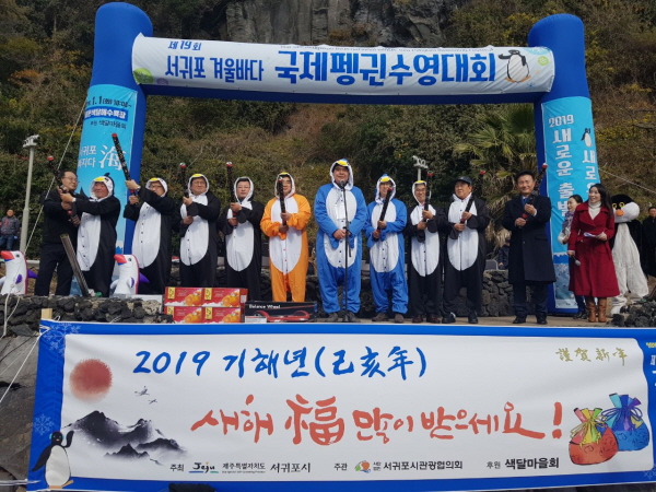 (제주=국제뉴스) 고병수 기자 = 2019년 기해년 첫날인 1월 1일 제19회 서귀포겨울바다 국제펭귄수영대회가 성황리에 마무리됐다.