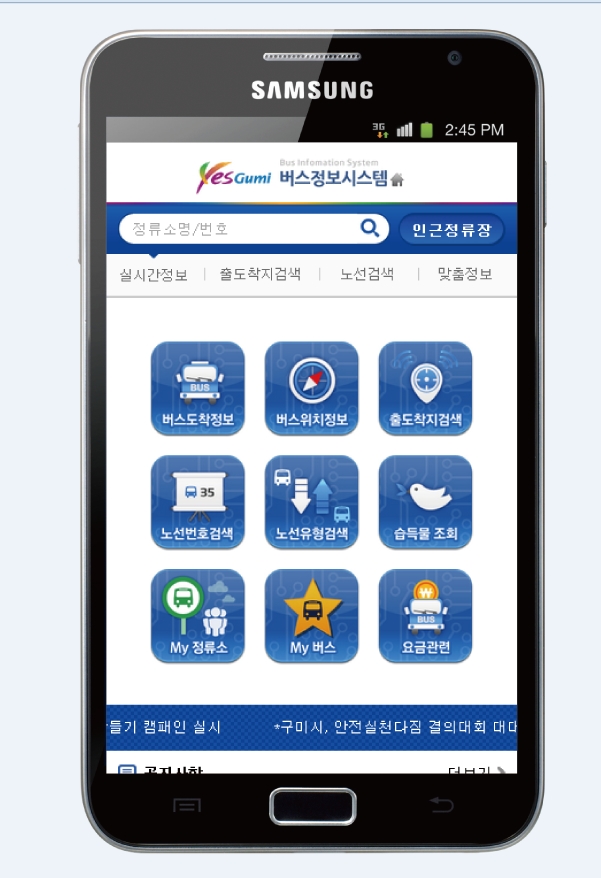 또 아이폰은 구미버스정보시스템 홈페이지(www.gumi.go.kr)에 접속해 고객센터-모바일 웹 이용안내에 제시된 QR코드를 스캔해 설치할 수 있다.