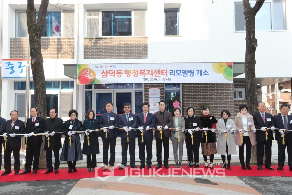 (대구=국제뉴스) 백운용 기자 = 대구 중구(구청장 류규하)는 1월 23일 오후 2시 삼덕동 행정복지센터에서 리모델링 및 증축 개소식을 개최했다. 개소식에는 류규하 중구청장을 비롯한 구의장 및 구의원, 협의단체장, 주민 등 100여명을 모시고 테이프커팅, 동청사 라운딩, 경과보고, 감사패 전달 등으로 진행됐다.