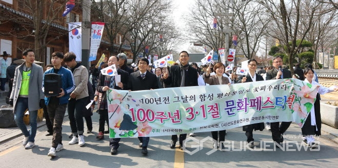 이날 행사는 오전 12시 30분부터 전주 풍남문 광장 앞에서 3.1 운동 및 대한민국 임시정부 수립 100주년 기념식과 독립투사 어록 낭독, 박 터트리기 등의 행사가 진행됐고, 한옥마을에서 3.1만세운동을 재현하는 거리 퍼레이드와 태극기 플래시몹도 진행됐다.