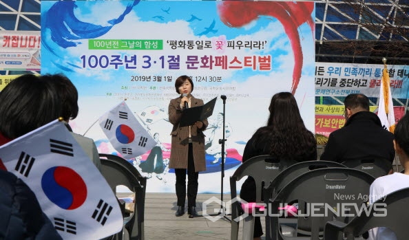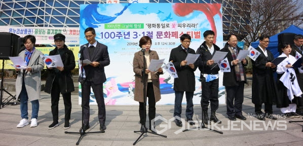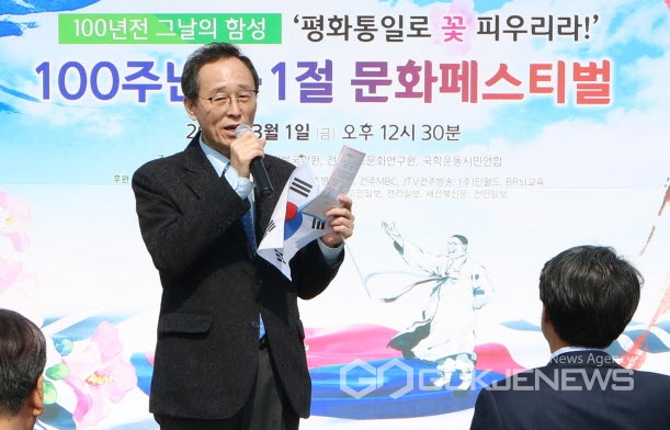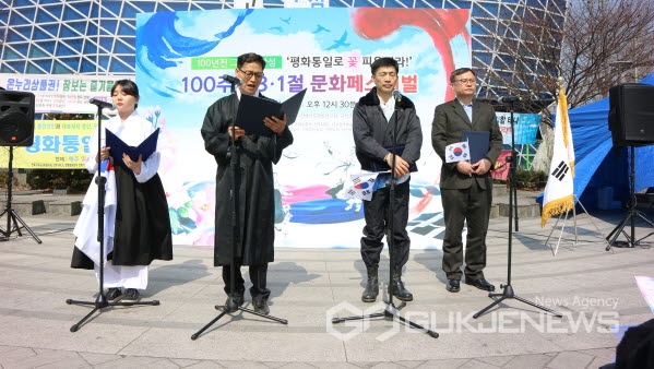 전주풍남문 광장에서, '100년 전 그날의 함성, 평화 통일로 꽃피워라!'