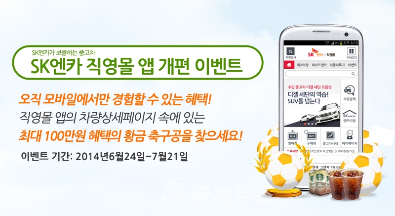 이번 이벤트는 SK엔카 직영몰 공식 어플리케이션을 통해 참여할 수 있다. 아이폰은 모바일 홈페이지(m.encarmall.com)로 접속하면 된다.