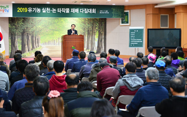 이번 다짐대회는 농업인 스스로 유기농 실천을 통해 소비자에게 신뢰받는 안전한 유기농산물을 생산하고, 쌀 수급의 안정과 농촌 소득 증대 등을 위해 유기농 실천 및 논 타작물 재배의 참여 분위기를 확산시키기 위해 마련됐다. 행사에서는 친환경농업 관련 대표와 관련 공무원의 결의문 낭독과 올해 친환경 농업 정책의 방향, 친환경농산물 인증제도 및 시행규칙 개정사항 등에 대한 설명이 이뤄졌다.