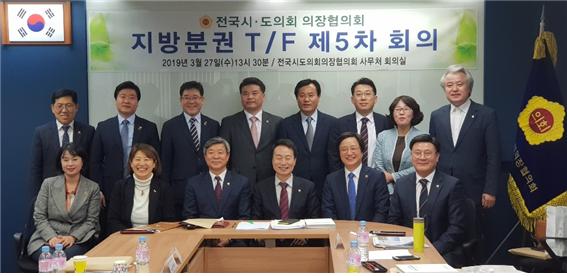 지방분권TF는 지난해 10월 전국시도의회의장협의회에서 지방자치 관련 주요 제도개선과제 해결책 모색을 위해 전국 17개 시도의회를 대표한 위원들로 구성돼 전국 광역의회 의원 전체의 협력을 이끌어내기 위해 구성됐다.