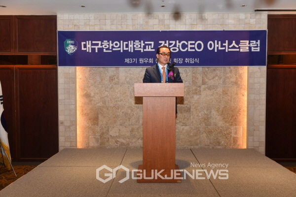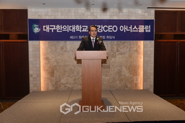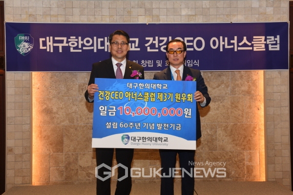 (대구=국제뉴스) 백운용 기자 = 대구한의대학교 건강CEO 아너스클럽 3기생들이 원우회 총회와 회장을 선출하고 대학에 발전기금을 전달했다.