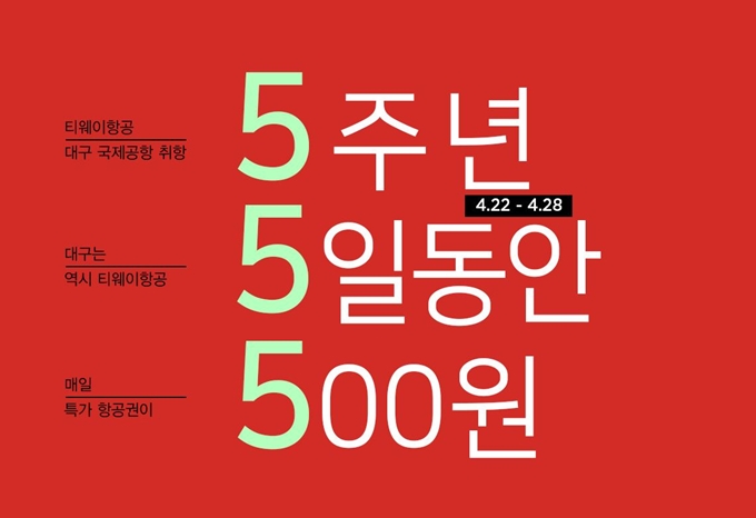 티웨이항공이 대구국제공항 취항 5주년을 맞아 파격 이벤트를 진행해 관심을 끌고 있다.