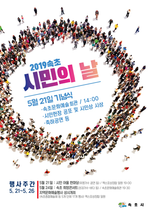 민선7기를 맞아 시민의 날 부활을 통해 시민 상호간에 친목과 화합을 도모하고 지역에 대한 애향심을 고취하여 시민이 먼저인 살기 좋은 속초건설에 이바지 하고자「시민헌장조례」제정일(1996.5.21.)을 속초시민의 날로 지정하여 5월21일 속초문화예술회관에서 기념식을 개최한다.