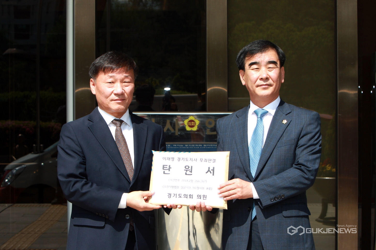 도의회 민주당 염종현 대표의원과 남종섭 수석부대표는 이날 오전 수원지법 성남지원 제1형사부에 '이재명 경기도지사 무죄판결 탄원서'를 제출했다.
