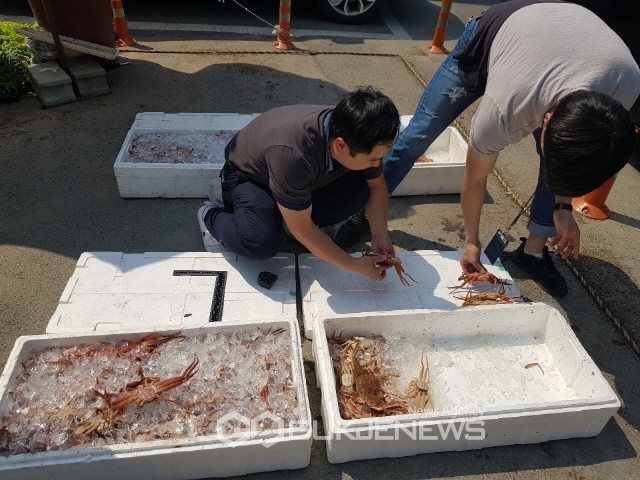 (속초=국제뉴스) 오형상 기자 = 속초해양경찰서(서장 이재현)는 11일 오후 2시경 강원 횡성군 횡성읍 읍상로 소재 횡성 전통시장 내에서 시가미상의 대게 암컷 119마리, 체장미달 대게 70마리를 판매 및 보관하고 있던 노점을 적발하고 업주 2명(60대 남녀 2명, 강원 고성군 거주)을 입건 조사 중이라고 밝혔다.