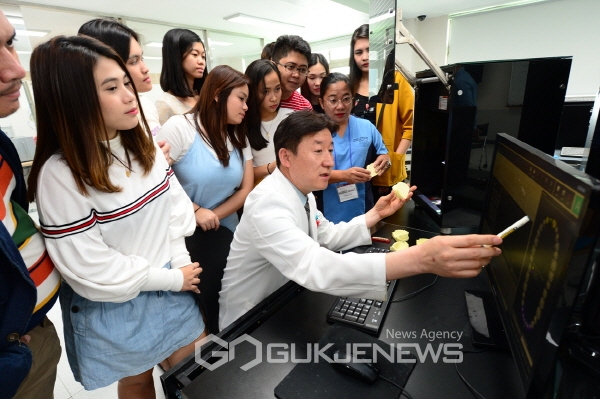 (대구=국제뉴스) 백운용 기자 = 28일 오후 대구보건대학교 미래관 3층 301호 교육의 나눔으로 행복한 기운이 가득한 ICT덴탈센터 교육실. 타국의 학생들이 케이덴탈(K-Dental) 교육 프로그램 강사(박영대 치기공과 교수)의 설명을 하나도 놓치지 않기 위해 집중하면서 메모를 하고 휴대 전화로 녹음을 하고 있다.