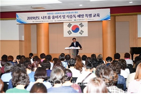 (대구=국제뉴스) 백운용 기자 = 대구 동구청에서는 6월 12일 동구청 대회의실에서 어린이집 및 노인요양 시설 등 사회복지시설 급식관리 종사자들을 대상으로 식중독 예방 특별교육을 실시하였다