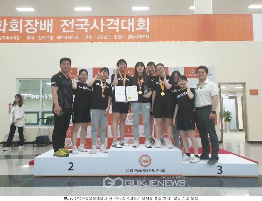 (부산=국제뉴스) 김옥빈 기자 = 부산영상예술고등학교 사격부 8명(1학년 7명, 3학년 1명)은 지난 22일 창원국제사격장에서 개최된 '2019 한화회장배 전국사격대회'에서 한국주니어신기록으로 단체전 정상을 차지했다고 26일 밝혔다.