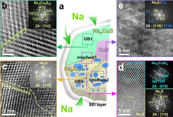일반적인 전환반응의 경우 전환반응 전후의 결정구조가 완전히 다르고 부피팽창도 크기 때문에 입자가 분쇄돼 성능 열화를 유발한다. 그러나 황화구리는 나트륨 저장에 따라 유동적인 결정구조 변화를 해 유사 정합 경계면을 형성하고, 이는 입자의 분쇄를 막아주는 결정적인 역할을 한다고 연구팀은 설명했다.