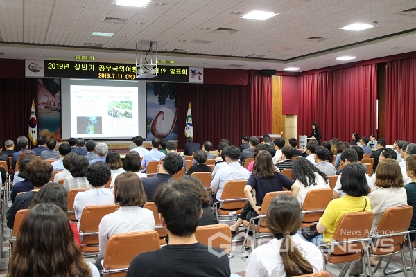 (영동=국제뉴스) 이재기 기자 = 충북 영동군은 11일 군청 대회의실에서 160여명이 참석한 가운데 ‘2019년 상반기 공무국외여행에 따른 군정제안 발표회’를 개최했다.