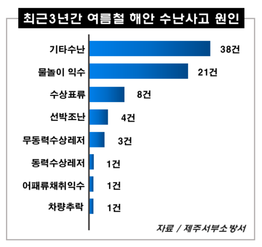 지난 26일에는 오후 10시40분경 제주시 구좌읍의 한 해안에서 낚시객이 물에 빠져 구조 후 병원으로 옮겨졌지만 끝내 숨지기도 했다.