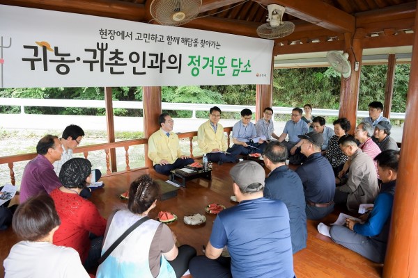 마을정자에서 진행된 대화에서는 귀농·귀촌 정책 뿐 아니라 농산물 판로확보 방안, 농촌 생활환경 개선, 지속가능한 농업 농촌에 대한 대화를 이어갔다.