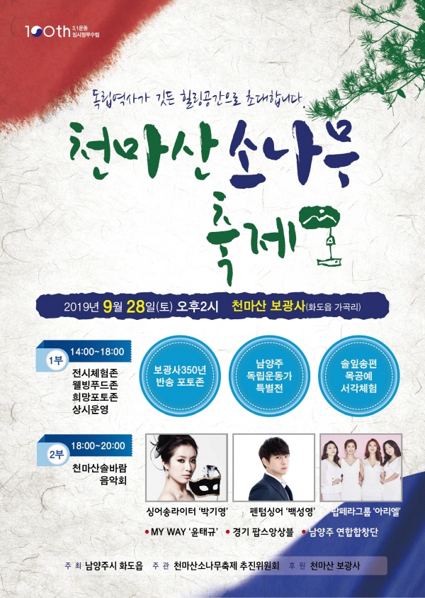 (남양주=국제뉴스) 임병권 기자 = 남양주시는 오는 28일 독립운동의 역사와 350년 반송이 있는 천마산 보광사에서 '천마산 소나무 축제'를 개최한다.