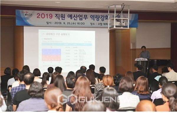 (대구=국제뉴스) 백운용 기자 = 대구 동구청(구청장 배기철)은 25일 구청 대회의실에서 간부공무원에서부터 신입직원까지 전 직급 250여 명을 대상으로 예산의 이해와 실무능력 제고를 위한 직원교육을 실시했다.