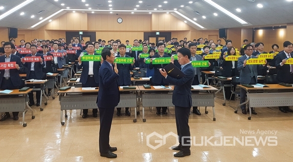 (경남=국제뉴스) 황재윤 기자 = 농협중앙회 조합감사위원회는 16일 농협중앙회 경남지역본부 대회의실에서 경남·부산·울산지역 농·축협 내부통제업무 담당자 및 지역검사국 직원 등 170여명을 대상으로 2019년 '농·축협 내부통제강화 실천결의 대회'를 개최했다.