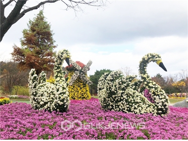이번 국화전시회는 '사랑'을 주제로 자연 속 동식물의 화합 한마당을 선보인다. 국화로 만든 기린, 코끼리 및 다람쥐 친구들을 꽃모형으로 만날 수 있고, 한 뿌리에서 1년 반의 기간을 거쳐 천송이 국화를 피워낸 천간작, 고목을 표현한 국화분재 등 국화의 순수성과 아름다움을 표현한 작품을 전시한다.