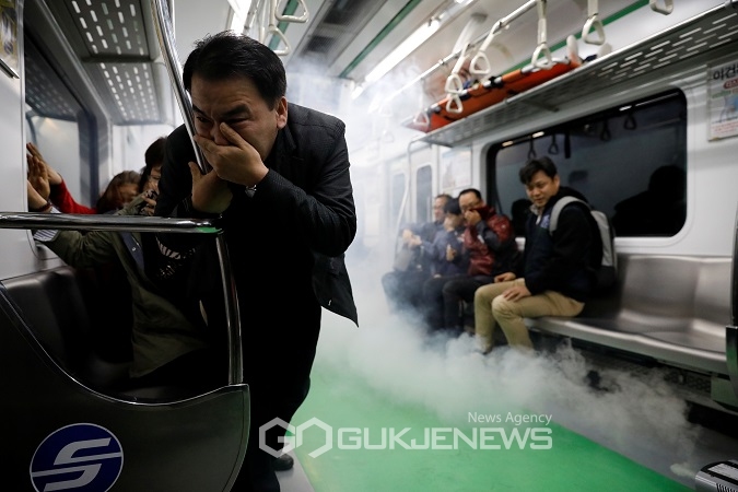People take part in an anti-terrorism drill in Seoul, South Korea, October 29, 2019.