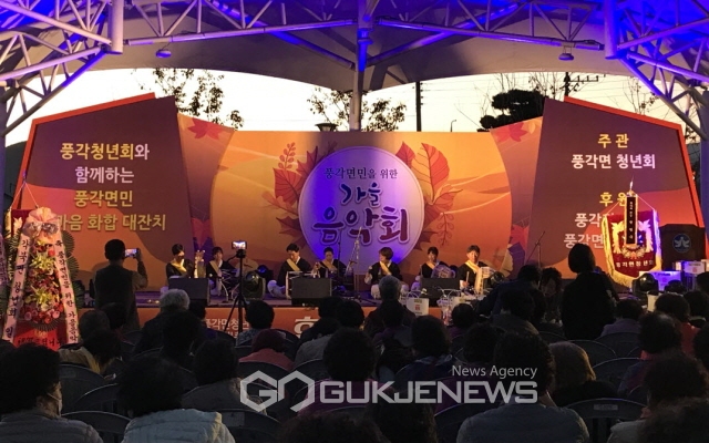 (청도=국제뉴스) 권상훈 기자 = 지난달 31일 경북 청도군 풍각면(면장 예규길) 풍각쟁이 광장에서 600여 명의 면민이 참석한 가운데 ‘풍각면민을 위한 가을음악회’가 성황리에 개최됐다.