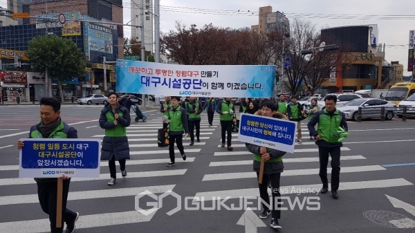 공단 본사를 포함한 두류수영장, 도심공원, 지하상가 등 대구전역의 20여개 사업장에서 전 직원이 참여하는 "청렴 게릴라 캠페인"을 개최했다.