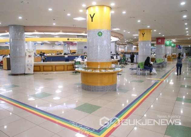 유니버셜 디자인(모든 사람을 위한 디자인)을 적용해 민원실 안내표시를 했으며 민원실 기둥 및 바닥을 활용해 빨강, 노랑, 파랑, 초록 색상에 따라 민원 창구를 쉽게 구분할 수 있게 만들었다.