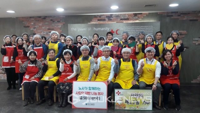 (부산=국제뉴스) 김옥빈 기자 = 부산시설공단은 12일, 부산적십자회관빌딩 9층 희망나눔봉사센터에서 임직원 40여명이 참여한 가운데 노사가 함께하는 사랑의 제빵나눔 봉사활동을 펼쳤다고 밝혔다.