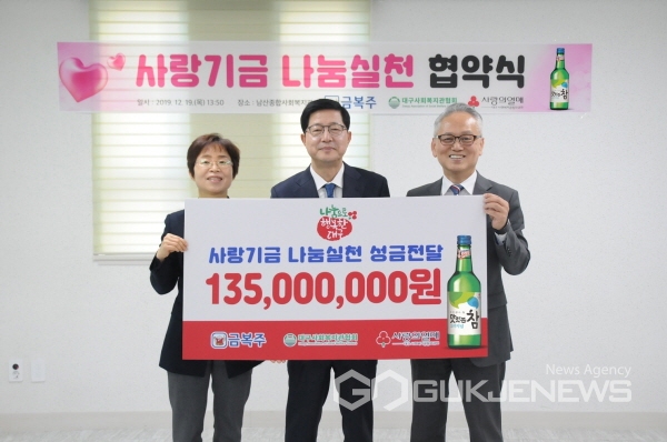 (대구=국제뉴스) 백운용 기자 = 대구·경북 주류회사 금복주는 19일 오후 대구사회복지관협회와 지역사랑기금 나눔실천 업무 협약을 체결했다고 21일 밝혔다.