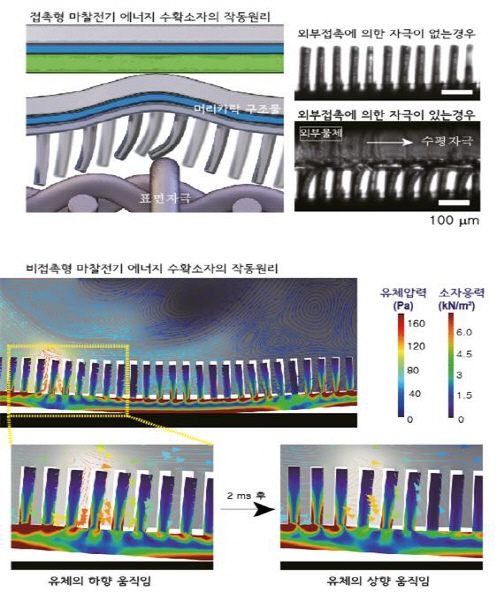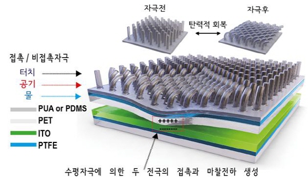 이에 연구팀은 모든 방향의 움직임을 수직 방향으로 바꿔주는 머리카락 모양의 나노구조물을 기존 마찰전기 소자 위에 부착하는 방식을 제안했다.