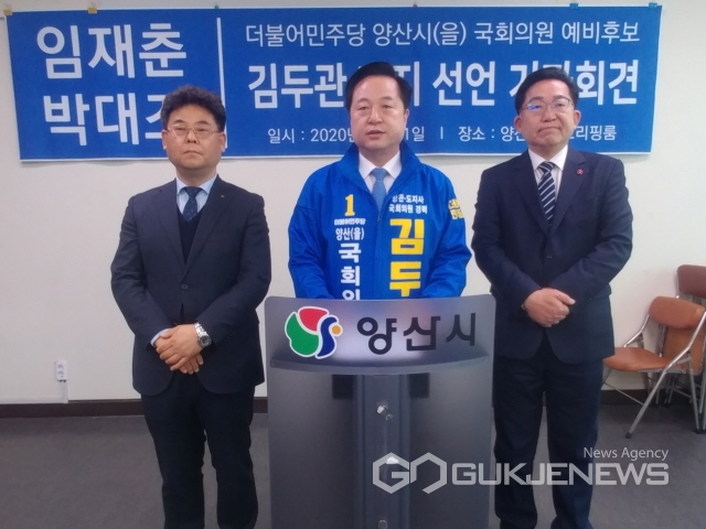 임재춘·박대조 두 예비후보는 사퇴 기자회견문에서 "양산을 지역의 선거가 전국적인 관심과 이슈를 받고 있다"며 "문재인 정부의 성공과 더불어민주당의 승리를 위해 그리고 또 더 큰 양산의 도약을 위해 경륜과 능력이 출중한 김두관 후보가 '양산의 확실한 변화'를 보여드릴 적임자라고 생각하며 김두관 후보의 총선승리를 위해 그 밑거름이 되도록 혼신을 다하겠다"고 밝혔다.