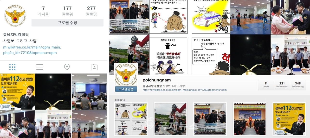 한편, 충남경찰은 이번에 개설한 인스타그램 외에 '페이스북, 트위터, 카카오스토리, 위키트리' 등 SNS를 통해 치안 시책 홍보활동을 전개하고 있다.