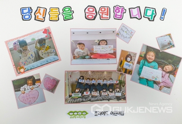 ’힘을 모으면 기적은 반드시 일어납니다', ’함께 응원합니다'와 같은 어린이집 선생님들의 마음이 담긴 응원문구도 눈길을 끌었다.