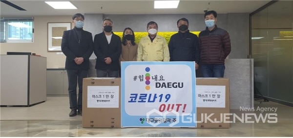 (대구=국제뉴스) 백운용 기자 = 대구농수산물도매시장 내 도매시장법인인 중앙청과에서 마스크 1만장을 기부하며 코로나19 확산 극복을 위한 응원에 동참했다.
