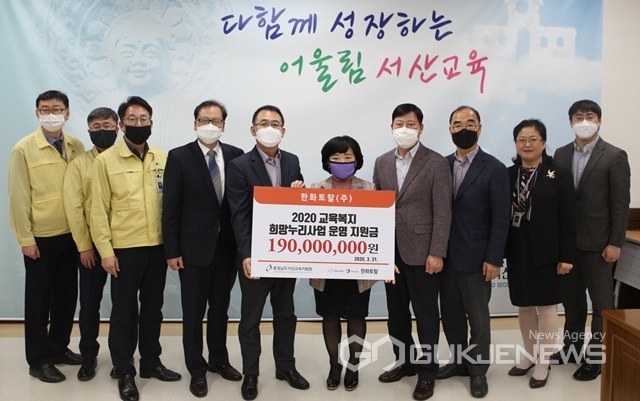 한화토탈은 같은 날 지역 청소년 재능육성 프로그램, 바다 가꾸기 사업 교육 프로그램 등을 지원키 위해 서산교육지원청에 1억 9천만 원을 기부했다.